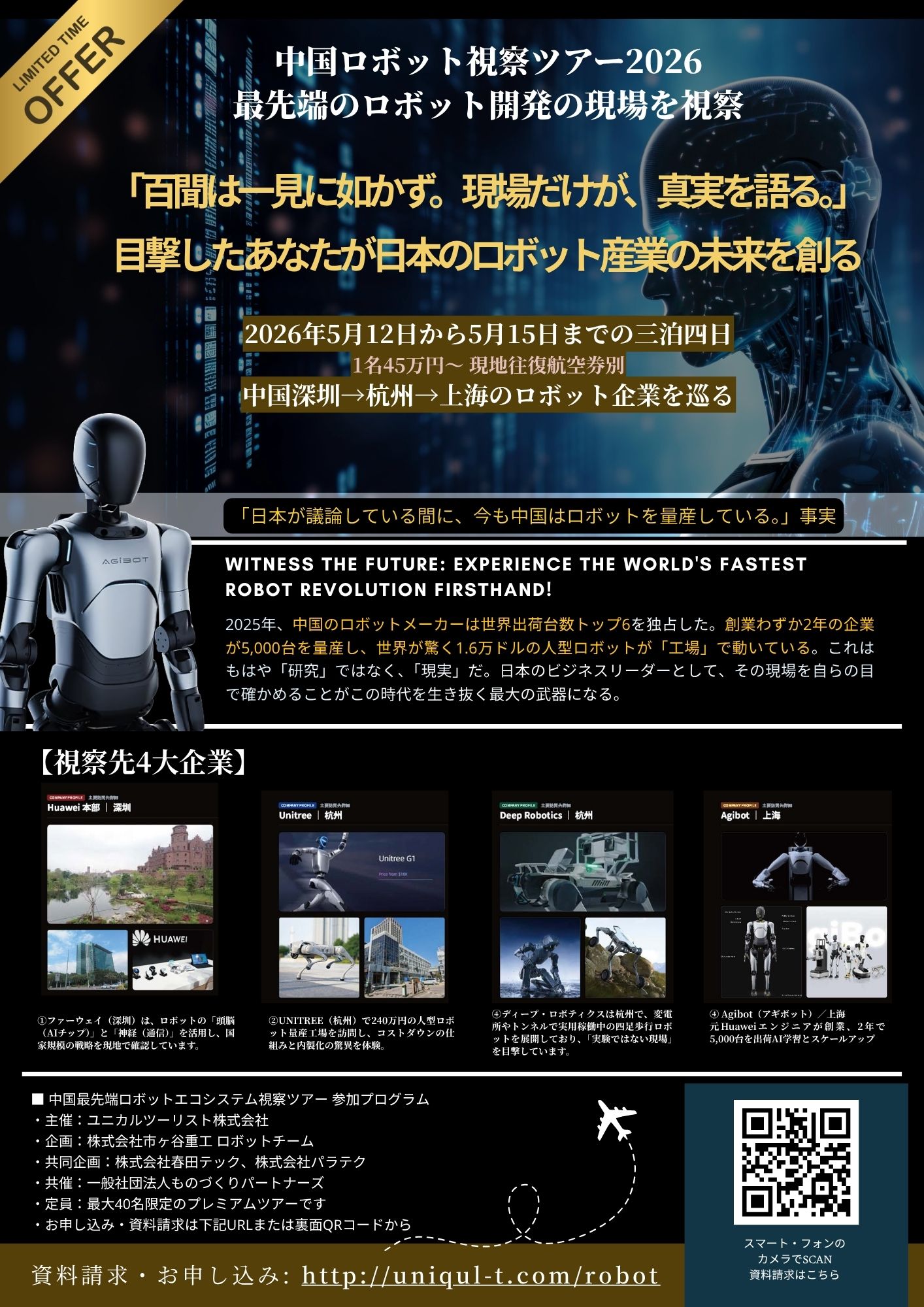 私たちは、この次に「アメリカ視察」を計画しています。経済安全保障が叫ばれる今、世界のロボット産業は「中国の量産力」と「米国の軍事・先端技術」の二極構造で動いています。