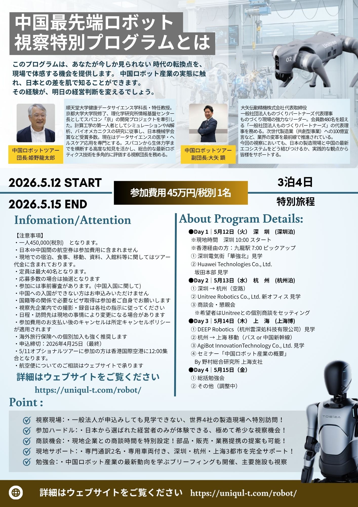 中国最先端ロボットエコシステム視察ツアー 参加プログラム